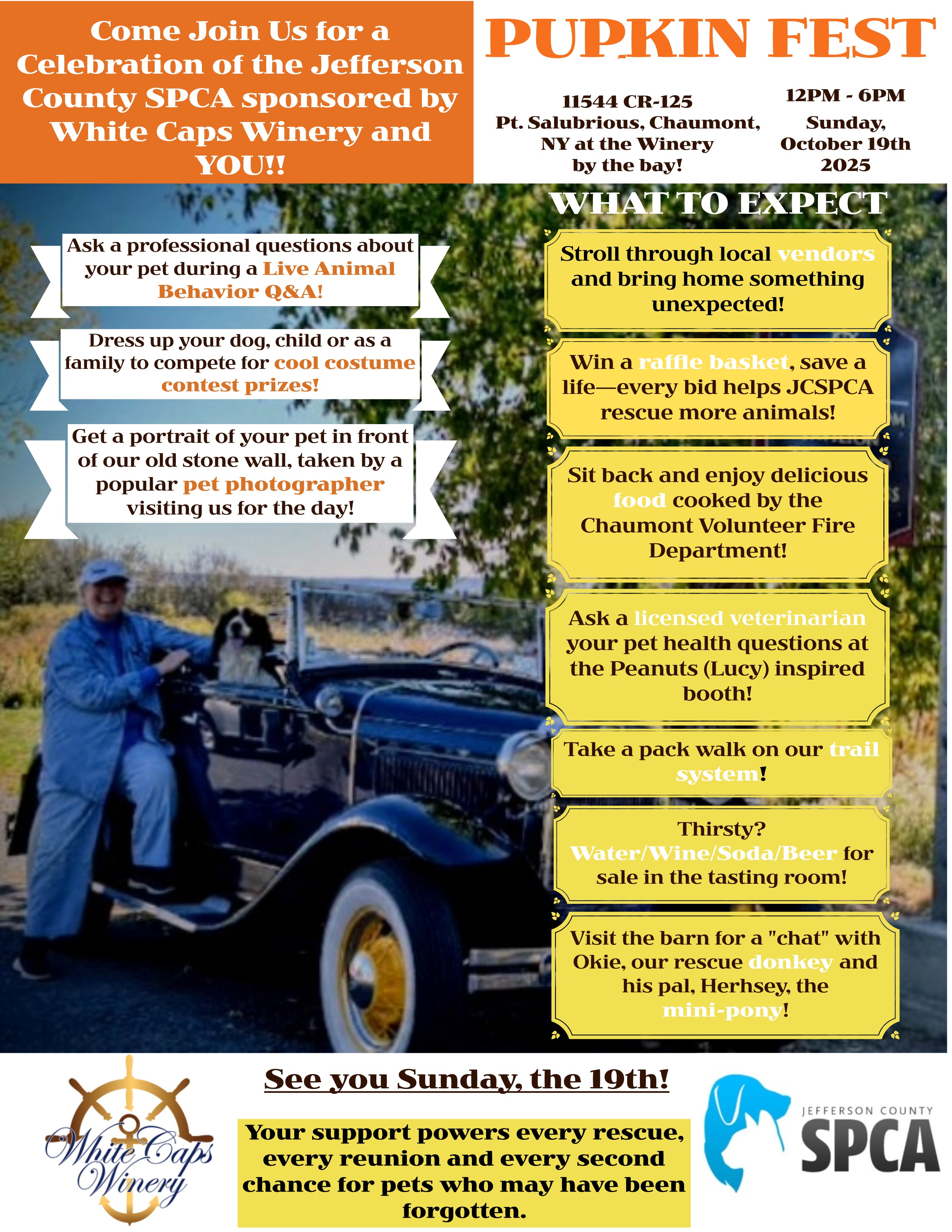 Come join us for a celebration of the Jefferson County SPCA sponsored by White Caps winery and you!.